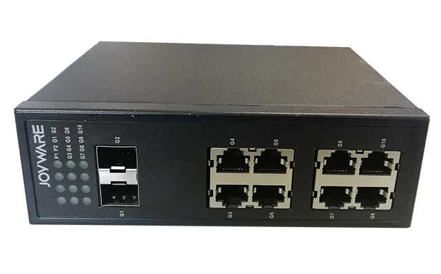 JW-SE20(GF1.GEx)-B系列非管理型工業以太網交換機,最大支持1個千兆SFP接口, 8個10/100M/1000M自適應電口。工業級無風扇設計,高等級EMC防護,能有效地抵抗靜電、脈沖、雷擊的干擾,支持壁掛式及機架式插卡安裝。無需配置,安裝維護方便。適用于平安城市、交通、校園、園區等。